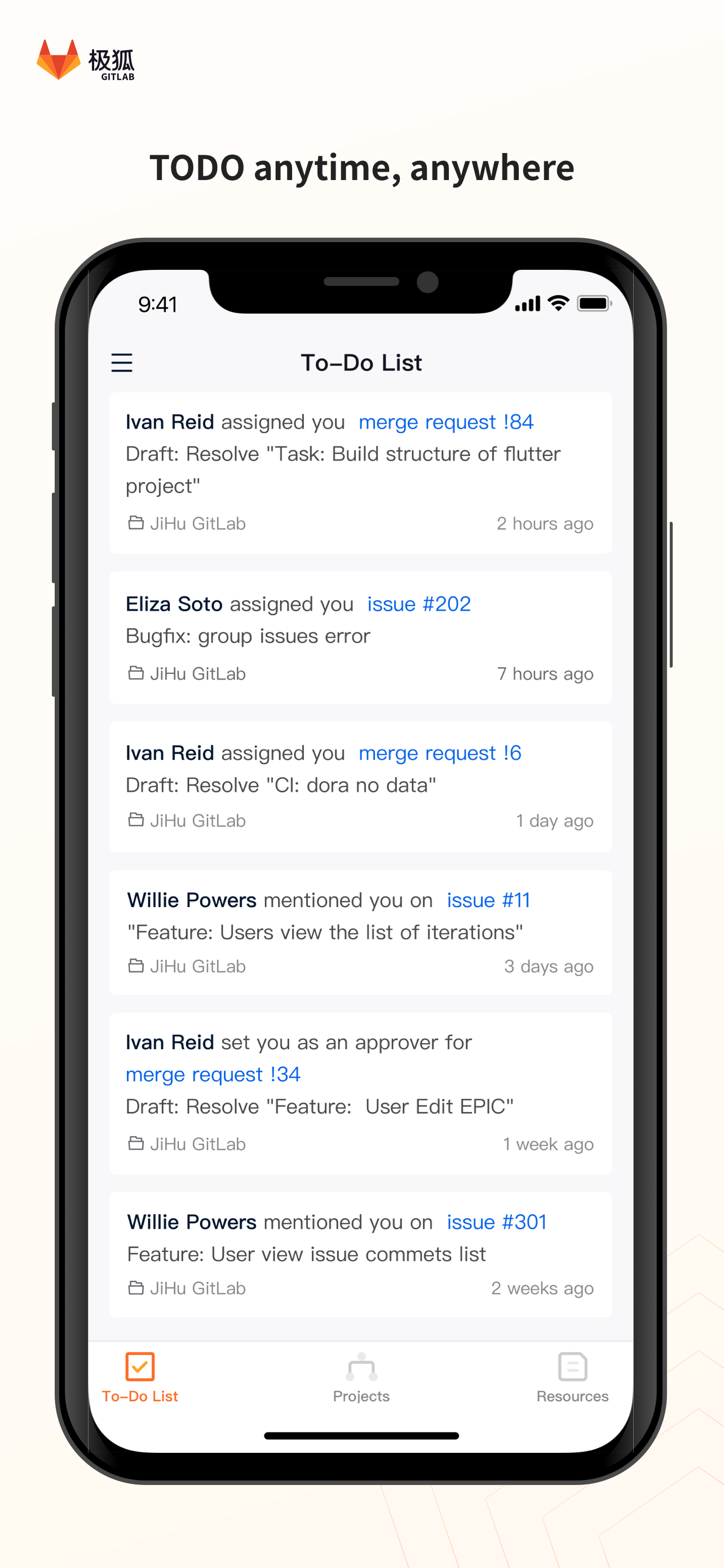 极狐 GitLab App 用于移动办公管理项目,可连接你的私有化实例、极狐 GitLab SaaS 以及 GitLab SaaS。